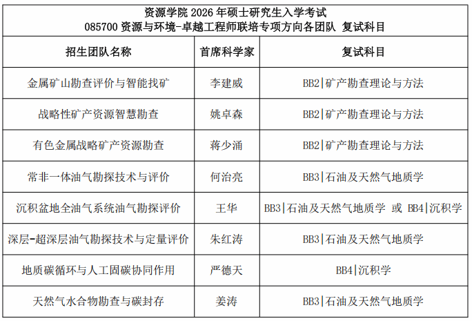 ag电子试玩 2026年硕士研究生入学考试085700资源与环境专业卓越工程师联培专项方向各团队复试科目