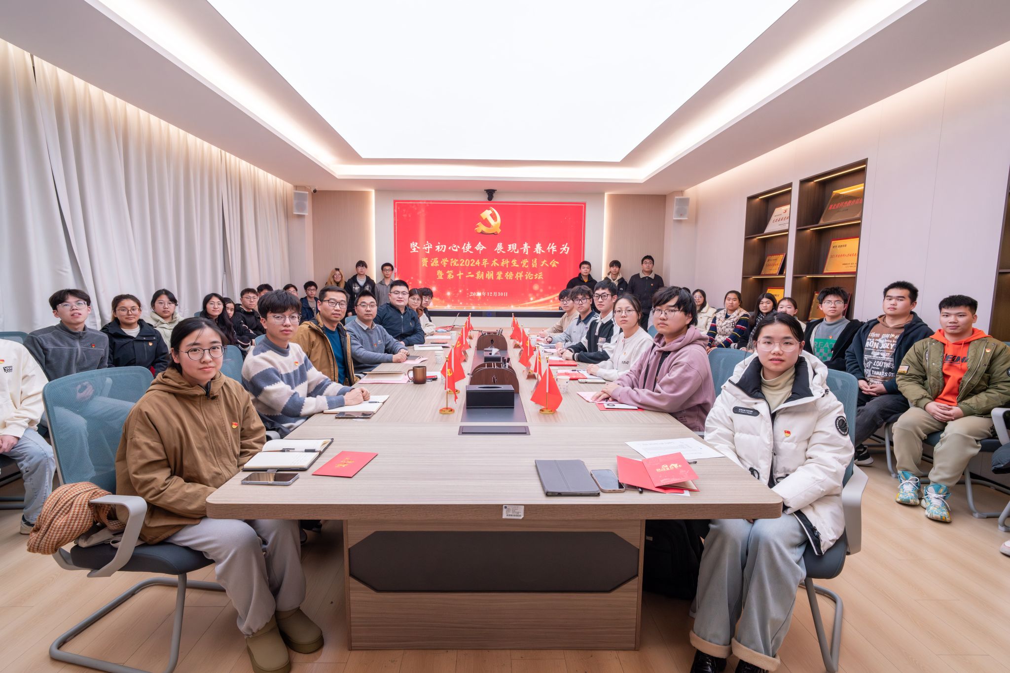 召开2024年本科生党员大会暨第十二期朋辈榜样论坛。学院党委书记汪再奇、党委副书记谭文伦,辅导员彭鑫,兼职辅导员李娜娜,本科生党员、入党积极分子代表参加会议。彭鑫主持会议。
