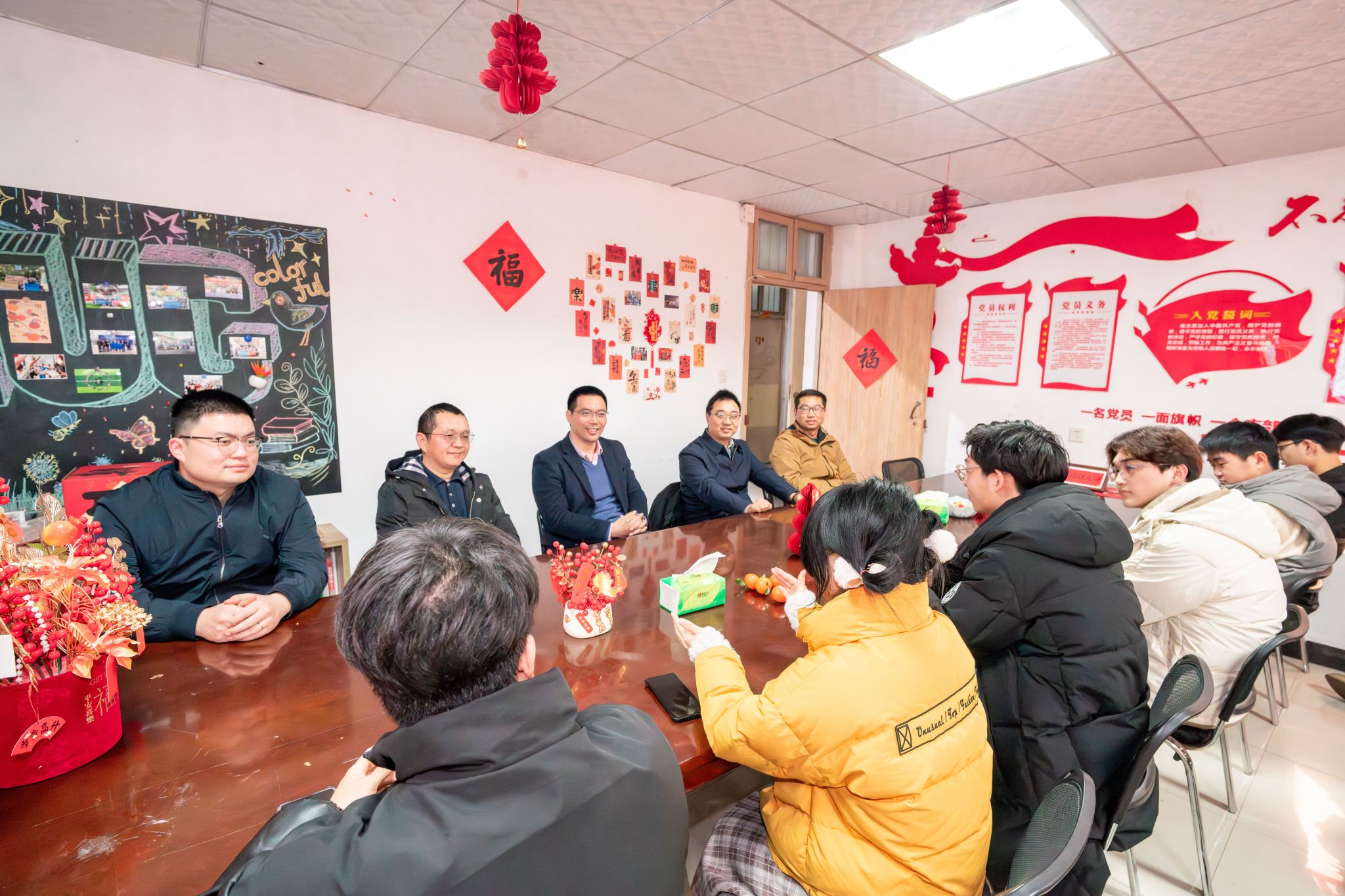 会后,汪再奇、严德天一行走进宿舍,与同学们亲切交流,为同学们送上新年祝福和对联。