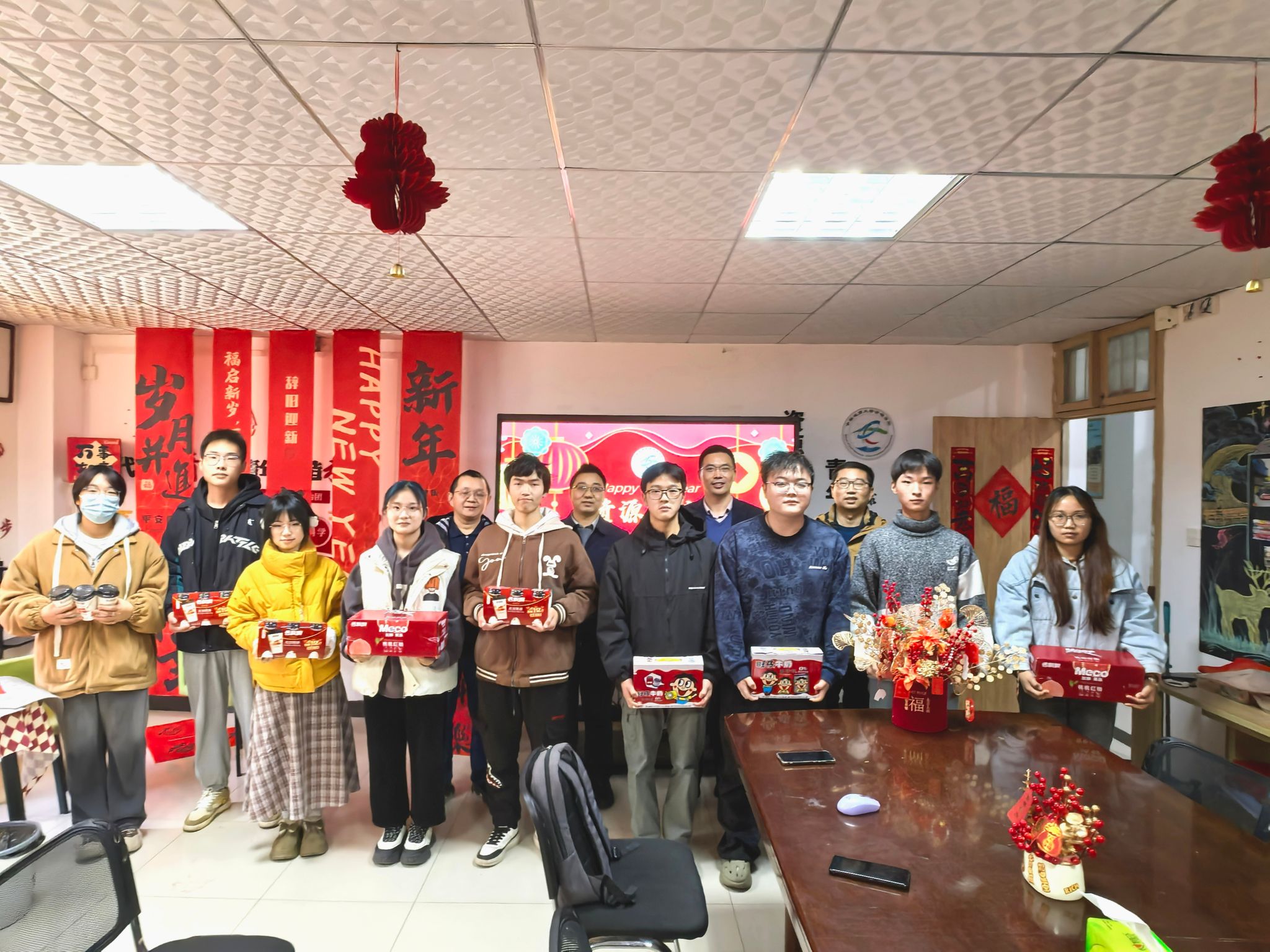 汪再奇、严德天了解了同学们近期学习生活情况,倾听了同学们在学业、生活等方面的诉求,耐心解答了同学们的问题,并向大家致以新年问候,希望同学们在新的一年立新目标,展新风采,幸福快乐,健康成长。随后,院领导为2025年原创春联作品获奖个人颁发奖品。
